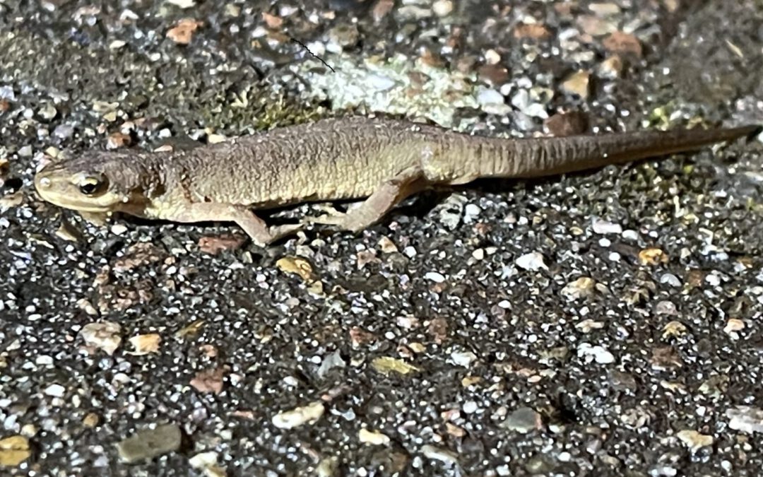 Der erste Teichmolch konnte am 22.02.2026 entdeckt werden. Damit wird bestätigt, dass die Amphibien mit der Frühjahreswanderung zu den Laichgewässern beginnen. Leider müssen sie dazu häufig Straßen überqueren. Da sie noch sehr träge unterwegs sind, schaffen es viele nicht und werden dabei leider getötet.