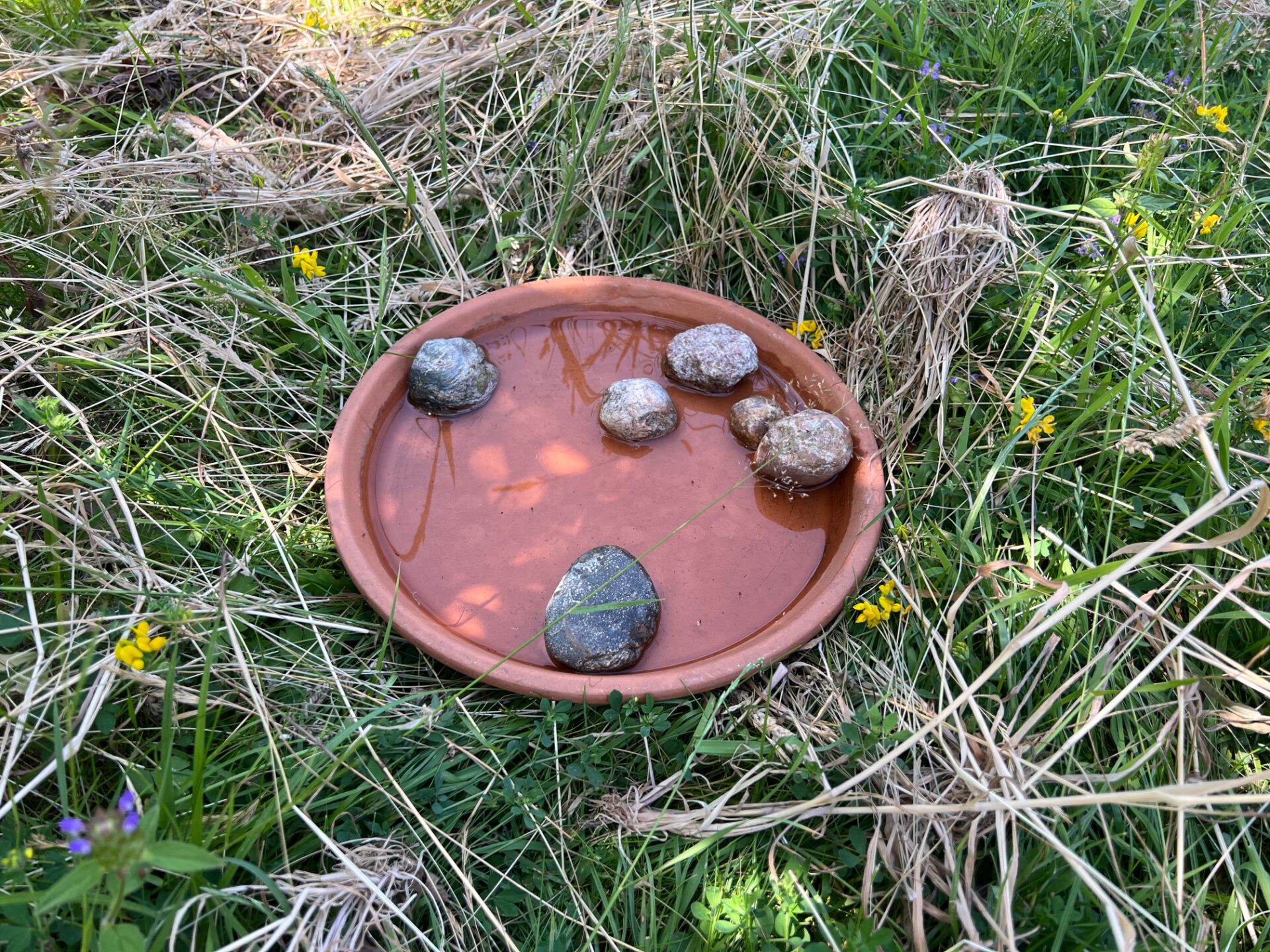 Die Steine oder der Ast helfen Insekten, Schmetterlingen, Käfern und anderen kleinen Tieren sicher das kühle Nass zu genießen.