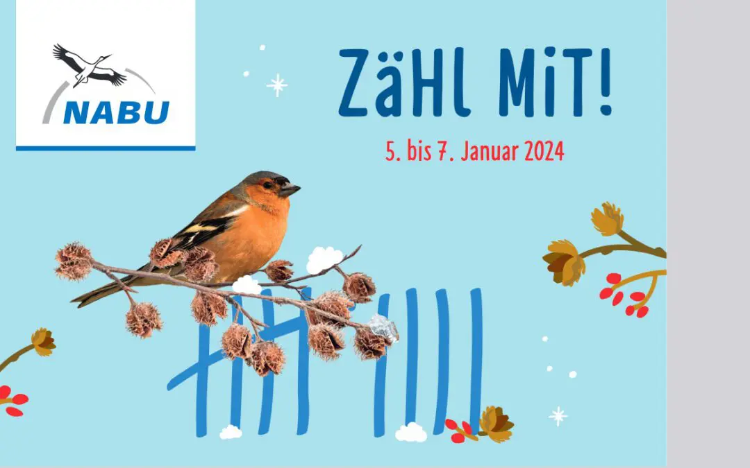 Hast du eine Meise? Ja, gleich mehrere im Garten. Was für eine Unterhaltung? Ob es bei ihnen piept? Schauen sie doch einmal nach und machen mit bei der bundesweiten Aktion der Winterzählung der Vögel vom NABU. Es ist ganz einfach und häufig für Kinder ein erstes bewusstes Naturbeobachten. Wie es geht? Suchen sie sich ein gemütliches Plätzchen am Fenster und notieren sie innerhalb einer Stunde die höchste Anzahl der gleichen Vogelart, die sie gesehen haben. Weitere Infos unter  https://www.nabu.de/tiere-und-pflanzen/aktionen-und-projekte/stunde-der-wintervoegel/index.html.